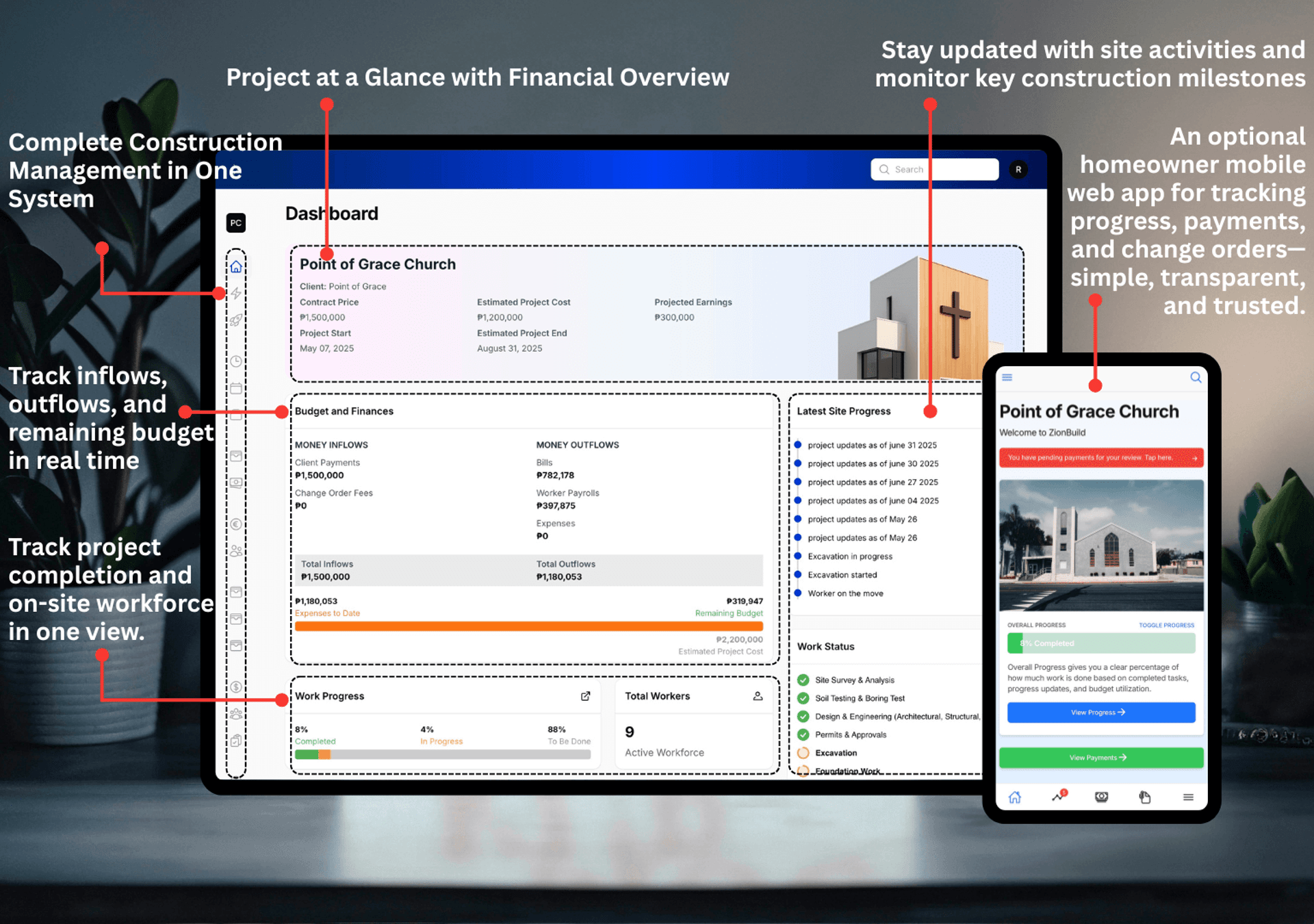Your contractor’s superpower — ZionBuild is a construction ERP system that helps you track progress, manage teams, control budgets, and deliver projects on time from one powerful platform.